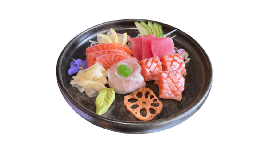 3 pieces of salmon, 3 pieces of salmon belly, 3 pieces of tuna and 3 pieces of fish of the day