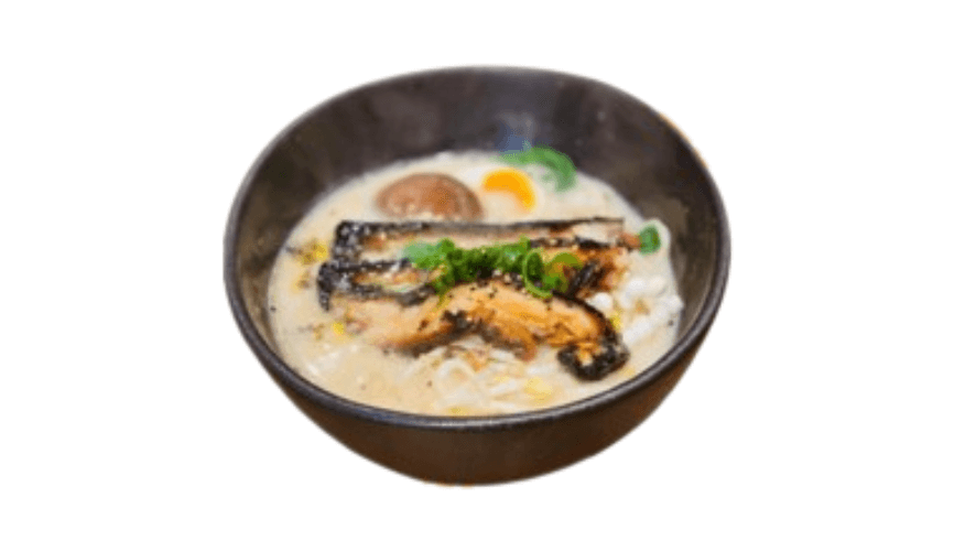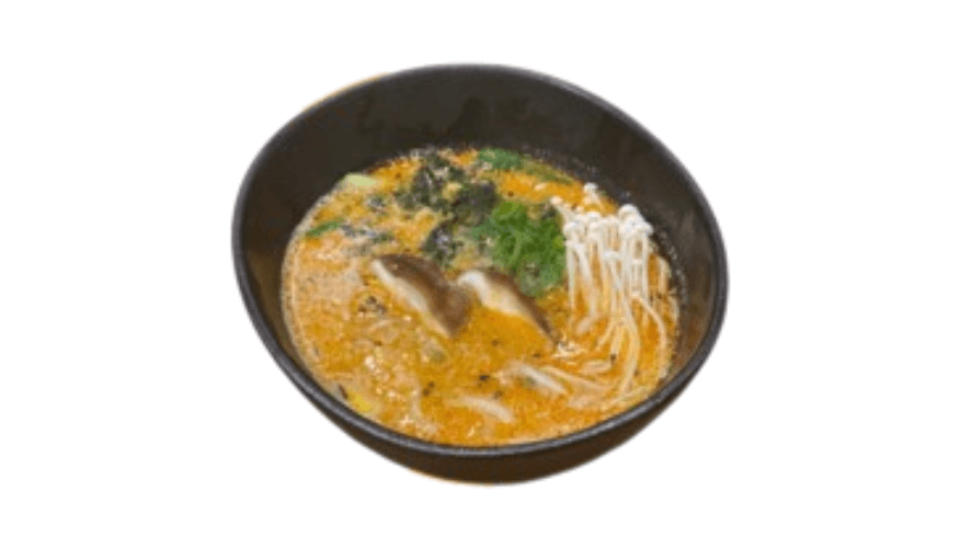 Truffle based spiced ramen with Portobello mushrooms, enoki mushroom, seaweed, Aussie bean-sprouts, pak choi, grilled corn, spring onion and sesame seeds