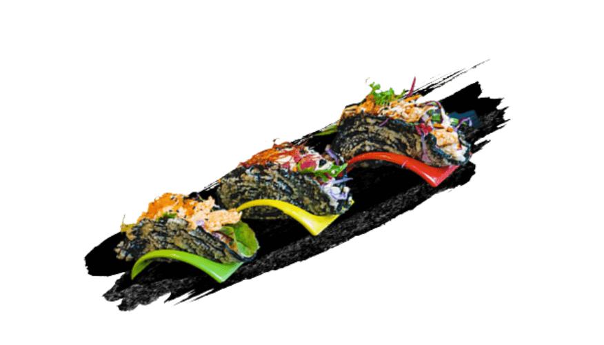 Crispy nori with sushi rice, salad mix and maki-mayonnaise