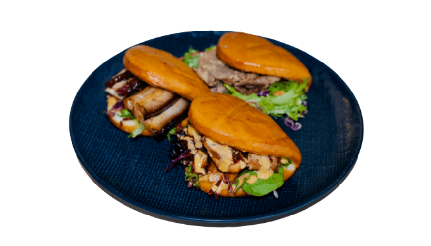 Fluffy bao bun with Japanese coleslaw and cucumber