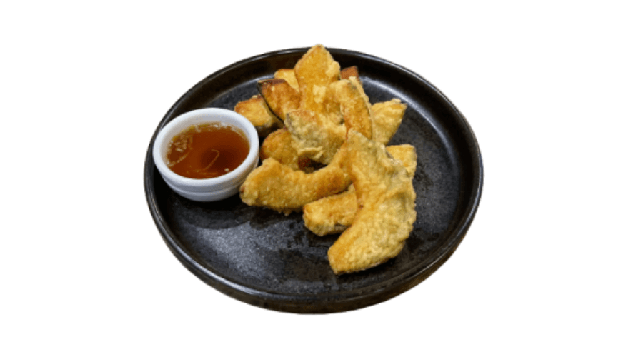 Battered pumpkin in tempura sauce