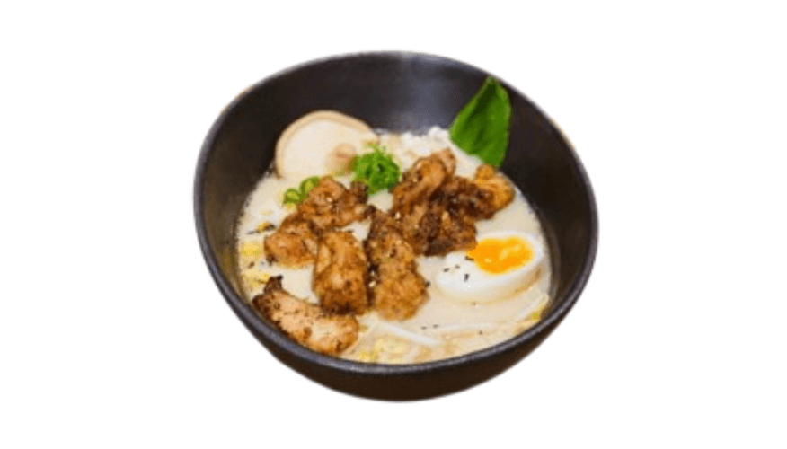 Traditional ramen with chicken katsu, enoki mushroom, Aussie bean-sprouts, pak choi, boiled egg, grilled corn, spring onion and sesame seeds