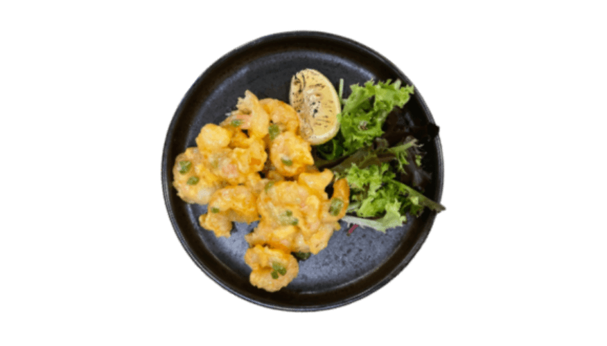 Battered prawns tossed with signature maki-mayonnaise with side salad