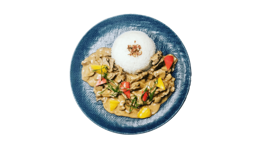 Choice of rice or udon noodles with grilled beef, curry sauce, potato, carrots, caramelized onion and pickles